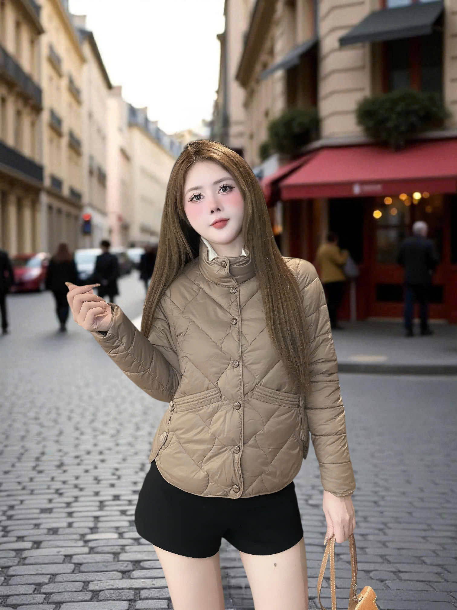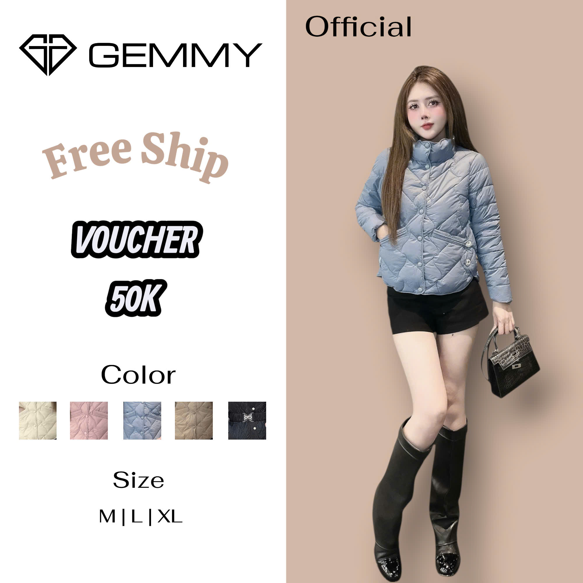 + Áo khoác phao nữ mùa đông siêu nhẹ dáng ngắn, dáng dài form ôm chất liệu Poly cao cấp